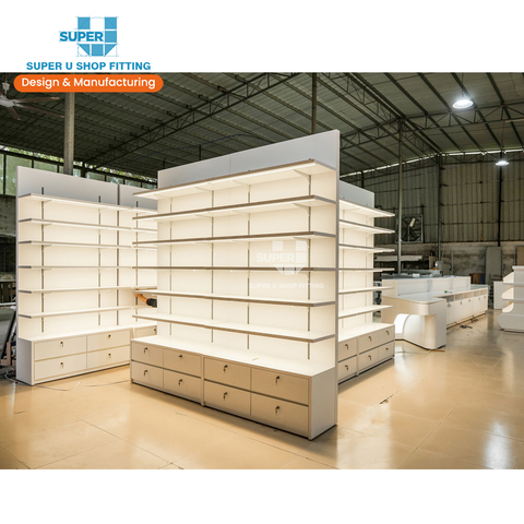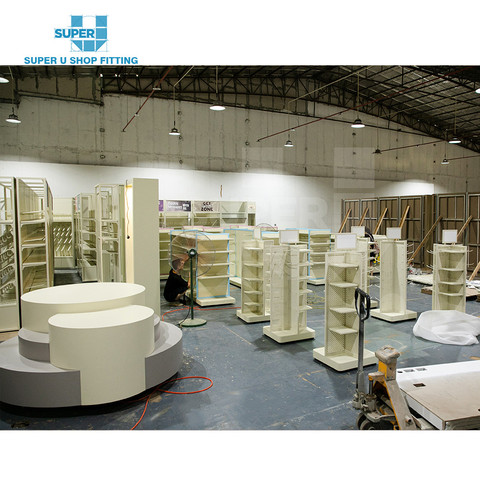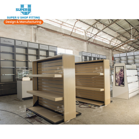 Centre commercial conception de magasin entier peinture en bois vitrine parfum présentoir cosmétiques étagère