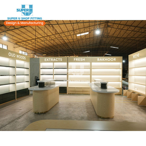 Magasin entier personnalisé parfumerie haut de gamme vitrine lumière luxe présentoir lumineux vitrine haut de gamme