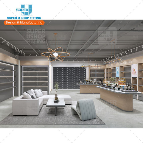 Présentoir de magasin d'aromathérapie moderne personnalisé Kiosque à parfum pour meubles Convenable à la parfumerie Design d'intérieur
