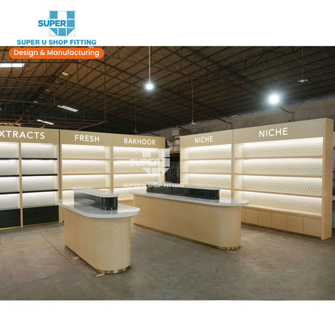 Présentoir de parfum personnalisé en usine comptoir de magasin de beauté vitrine de conception et de production